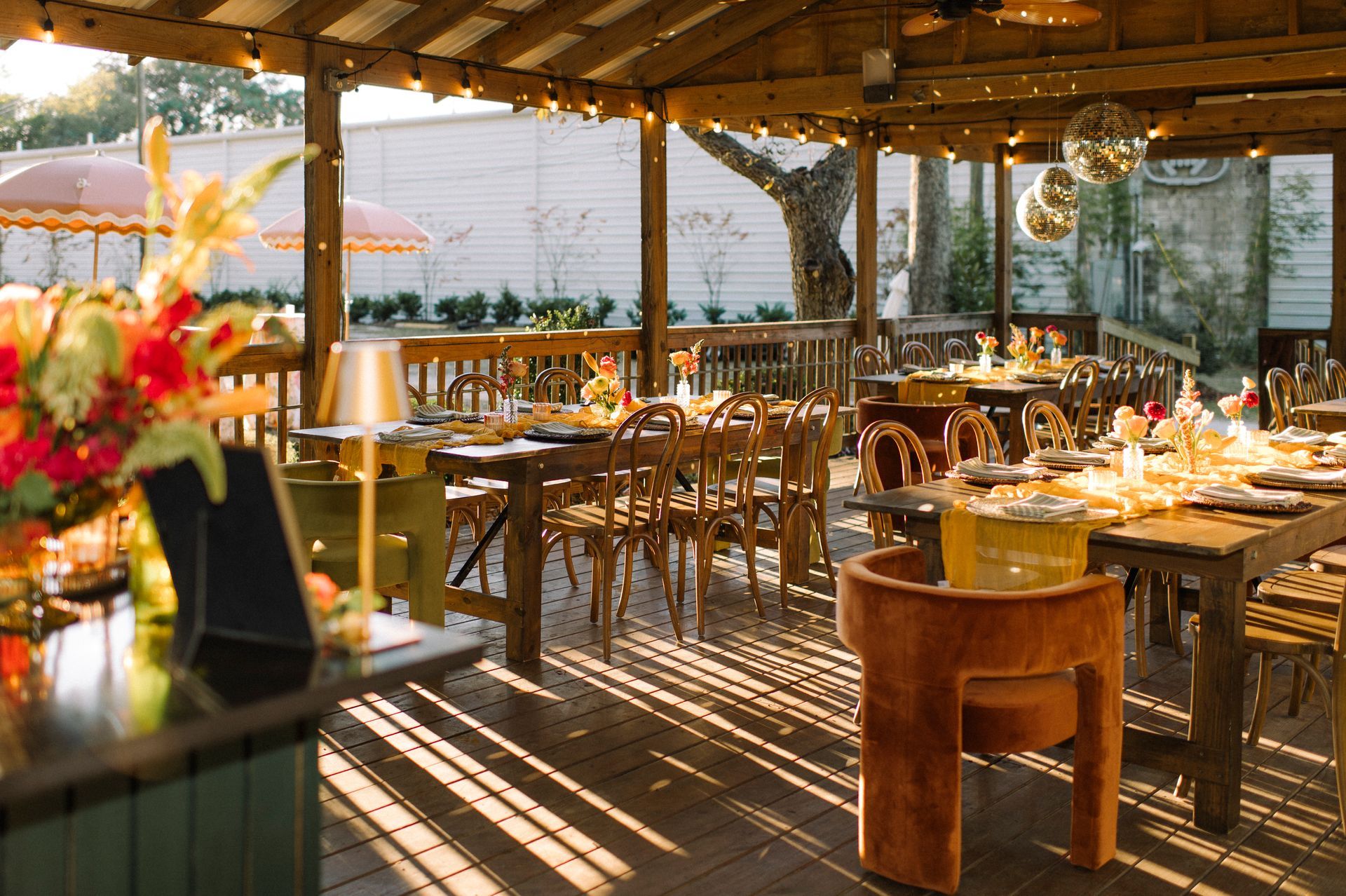 Enjoy the wood-paneled, midcentury goodness that is the Starlight Dining Room and Lobby. Guests will enjoy the retro charm of our original lobby entrance and socialize in style around vintage leather banquettes. With plenty of space for drinks, dinner, or performance, this is the perfect indoor setting for any kind of celebration.