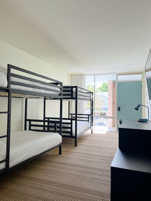 Each room overlooks the pool and sleeps up to 4 guests in bunk-style single beds. Great for bachelors, bachelorettes, or sailors on a budget. Contact us to discuss booking the entire Bunkhouse & Poolhouse for your next event!