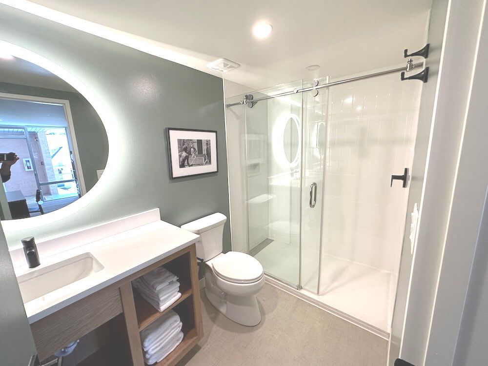 Adventures are best shared with the ones you love. These rooms have two queen size beds, a mirror built for sharing, and unlimited hot water. The perfect place to start your journey or lay your head after a night on the town. With luxe bath products, a hairdryer, and 55" TV, you have everything you need for a perfect stay in the BIg C. Just remember to pack your dancing shoes!